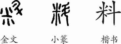 “料”是会意字。金文从斗,从米,会用斗量米之意。小篆承接金文而来。隶变后楷书写作“料”。