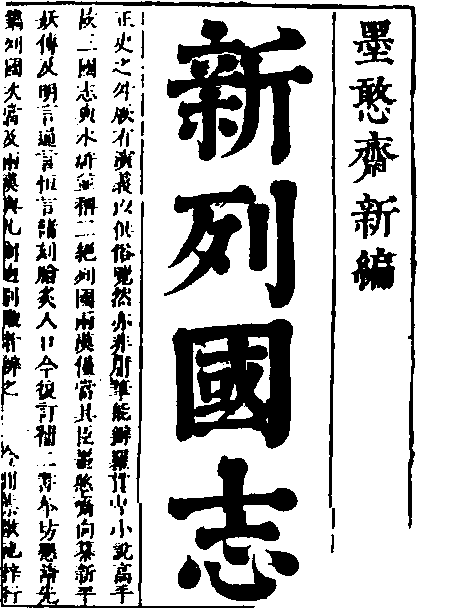 明代白话长篇历史演义小说。又名《玉鼎列国志》。一百零八回。题“墨憨斋新编”。编者即冯梦龙。冯梦龙(1574—1646),字犹龙,别号龙子犹,苏州长洲人。成书于明崇祯年间。
