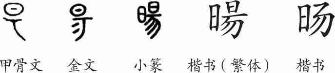 《说文·日部》:“暘,日出也。从日,昜声。《虞书》曰:‘暘谷。’”(暘,太阳出来。从日,昜声。《虞书》说:“太暘出来的山谷。”)