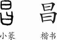 “昌”是会意字。小篆从日,从曰(开口说话),会光明正大的善言之意。隶变后楷书写作“昌”。