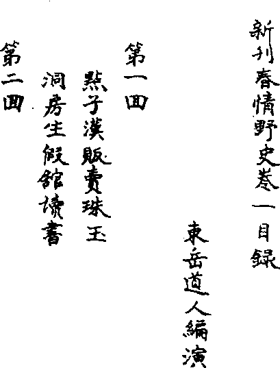 清代白话长篇艳情小说。八卷八回。题为“东岳道人编演”,其生平不详。成书于清中后期。