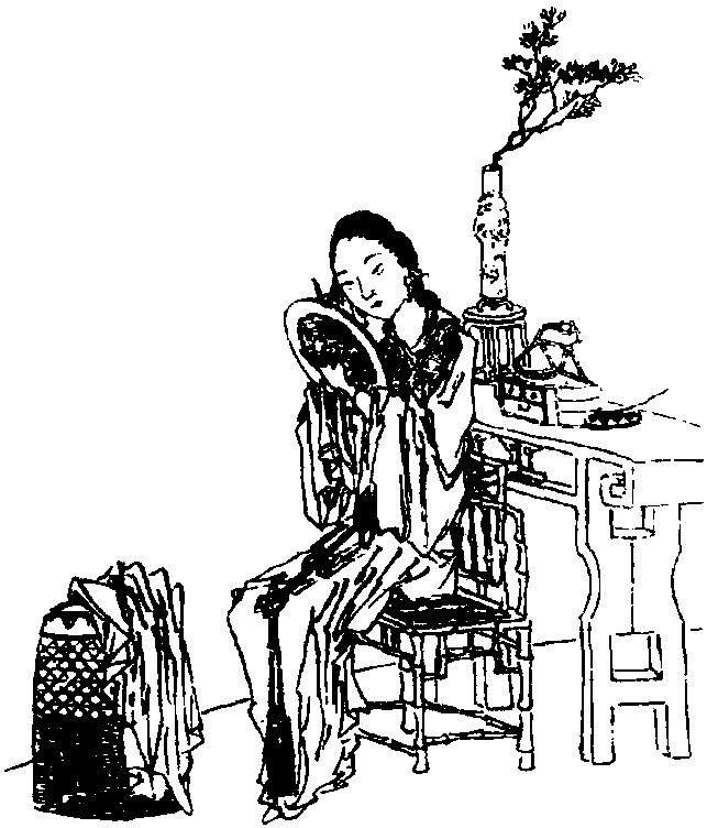 上阕描写歌女与情人相会前的精心妆扮和精彩表演。起首 “绿阴春尽” 二句描述暮春节令和事件发生的环境。“绕” 字十分传神,动感十足。“飞絮绕香阁”,暗示女主人公幽会前的不安和迷乱的心绪。三、四句描写她认真的用心良苦的梳妆打扮,尤写其对眉黛的刻意妆饰,正所谓 “女为悦己者容”。且眉目乃传情之所,作者写女主人公对眉黛的精心描画,起到了事半功倍,以一当十的作用。“晚来” 同时点明了具体的时间。“一寸”二句写相见后演出前的眉目传情,暗送秋波。“狂心” 点明双方激动的情绪。“画帘” 三句写演出的情形。“画帘遮匝” 写演出之环境。后二句写演出,但并未正面直接描写,而是通过侧面心理描写,表现女主人公为爱情不惜冒影响自己演出利益之险的感人内心世界。