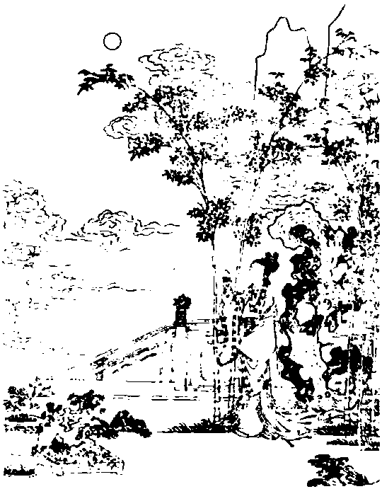 上阕写怀人盼归之情。起句写昨夜倚栏的情景。“天如水” 一写秋夜天空澄净明朗,二写秋夜冷清凄凉,三则引出下面句子情意: 月圆盼人归。“初将” 三句写情痴的一片痴情。“初将” 谓 “佳期” 并未随明月而来,故只好痛苦无望地 “长向月圆时候望人归”。虽然那个人也许 “永远不会回来”,但抒情主人公总盼着他 “明天便会回来”,这是一场没有结果的等待,但不会因此而停下来,所以感人至深。