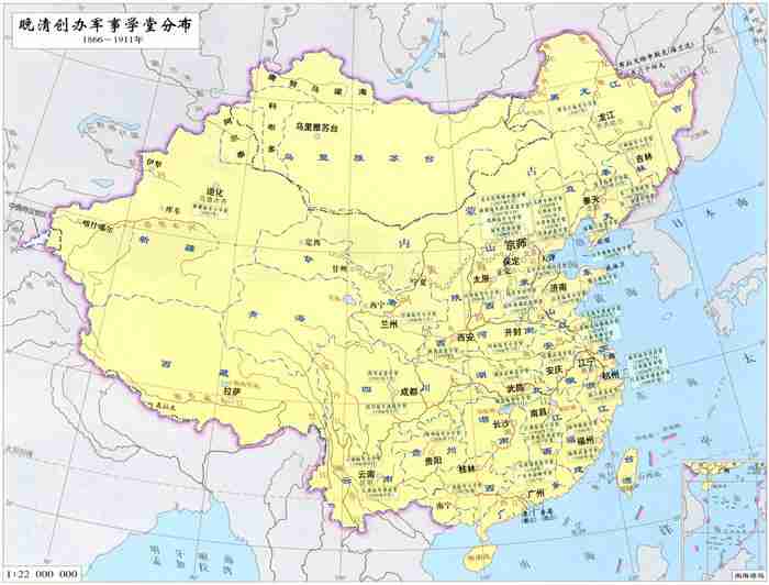 晚清创办军事学堂分布(1866~1911年)