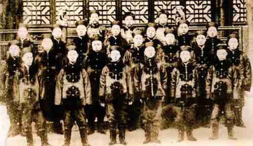 1898年,总理各国事务衙门派64人赴日本留学武备、格致和农商各学。图为湖北派遣的学习军事的留学生。