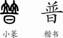 “普”是会意兼形声字。小篆从日,从并,会日色到处相同之意,并兼表声。隶变后楷书写作“普”。