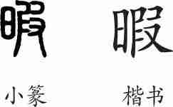 “暇”是形声字。小篆从日(表示与时间有关),叚声。隶变后楷书写作“暇”。