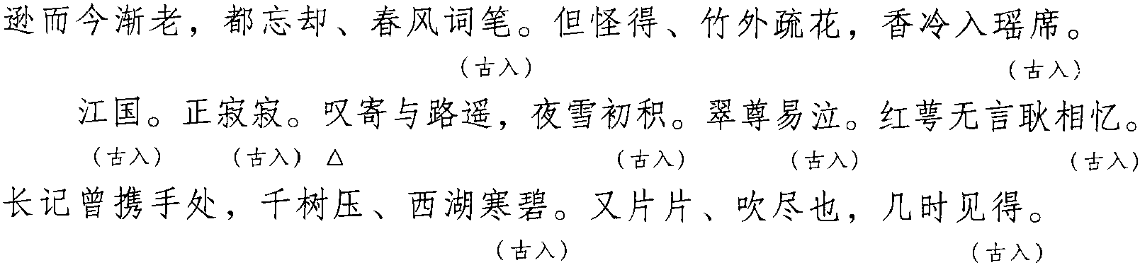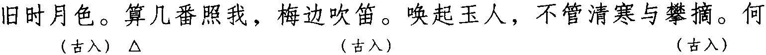 注:本词例押古入声“质” “陌” “锡” “职” “缉”韵。因“质” 与“衣” 在现代韵中同韵; “陌”“锡” “职” “缉” 与“碧” “寂” “力” “立”在古韵中同韵,而“碧” “寂” “力” “立”在现代韵中属“衣”韵。故全调可押衣部 “衣” 韵。