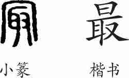 “最”是会意字。小篆从冃(冒犯),从取。隶变后楷书写作“最”。