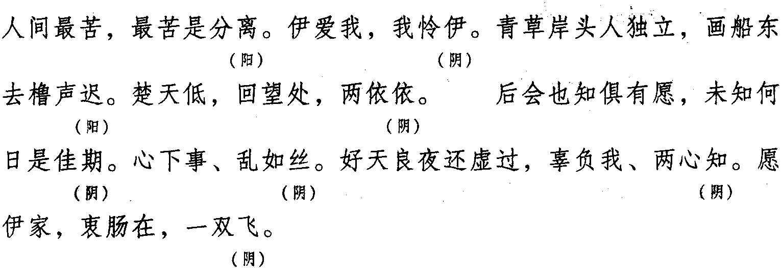 注:本词例押衣部“衣”韵。其中,“飞” 在古韵中属“支” 韵,而“支” 在现代韵中属“衣” 韵。