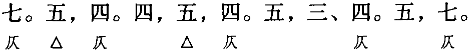 注: 本词例押古入声“月” “屑” “陌”“职”韵。因 “月” “屑” 在现代韵中属 “些” 韵,“些” 韵中的 “液” 与 “陌” 同韵,“色” 与 “月” “屑”属通韵,故本调可押些部“些” 韵。