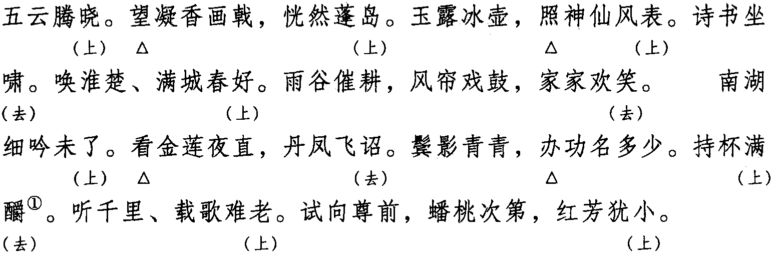 注:一、本词例押高部“高”韵。 二、①釂: 音“jiào”。将杯中酒喝完。 |
