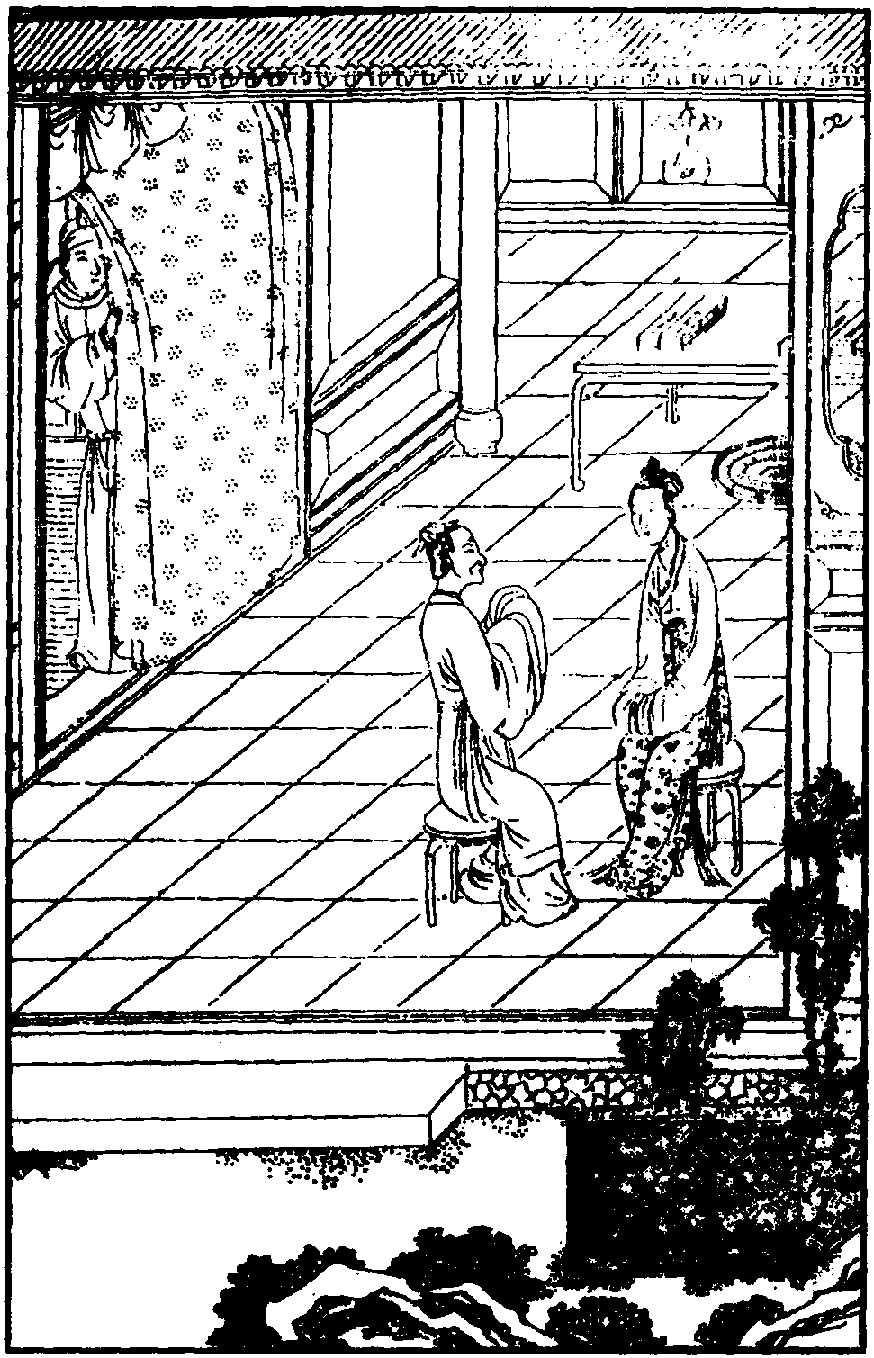 “你着他休忘了容易间,则这十个字莫放闲: 岂不闻 ‘芳槿无终日,贞松耐岁寒’。”对于谭记儿来说,因为经历过,所以认识得更清楚。特别容易得到的,人们往往不加珍惜,故多不能持久,因而有谭记儿的诸般推托,而这推托恰是为了让得到的爱情更持久,为了让白士中记住爱情来之不易。孟郊《审交》 诗云: “小人槿花心,朝在夕不存。” 这里用芳槿比喻人心多变。芬芳的槿花虽然很好看,却很容易凋谢; 只有那贞节的松柏才能笑傲严寒。这里连用了两个比喻,形成了鲜明的对比,说明了这般推托之后迟来的爱情将是持久的,是值得珍惜的,同时也表白了自己的爱将如那傲寒的青松一般。谭记儿重情、深情,要求持久、稳定的爱情,对曾经沧海的她来说,无疑是可以理解的。谭记儿十分周全、稳重,她把目光投向很久的将来,有了这样的特点,到后来一个人独闯虎穴骗走金牌、势剑,就成为一种必然了。同时,谭记儿又是深情、敏感、细心的人,她担心白士中怪她诸般推托,“非是我要拿班,只怕他将咱轻慢”,对着观众诉说衷情,希望能有人理解她。谭记儿又是一个羞怯的女子,答应之后却不好意思起来,“我我我撺断的上了竿,你你你掇梯儿着眼看,他他他把凤求凰暗里弹。” 欲说还休,吞吞吐吐,羞羞答答,好像在怪罪白姑姑怂恿她走到了这一步。白姑姑你以后可不能不管啊! 而那个人呢,却暗地里学起司马相如来了。这里有幸福、害羞,有心跳脸红,还有对白士中的欣赏与欢喜。接着她大胆地表露了心迹,她也要像卓文君那样,只要他一心对我好,我将一去不还。最难能可贵的是,谭记儿又大胆提出了对白士中的要求。既然我如此,那么你也应如同那贞松,一心一意,做个在爱情的道路上不转弯的人 (关通弯)。不仅仅有一往情深,还有理智,更有要求对方不要二三其德的平等追求。在提出要求后,她对爱情充满了信心,尽管还是羞羞答答,但最终还是同意了与白士中白头偕老!