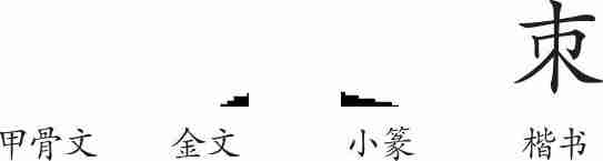 “朿”是象形字。甲骨文像以尖木穿物之形,是“刺”的本字。金文与甲骨文非常相似。小篆进一步线条化。隶变后楷书写作“朿”。