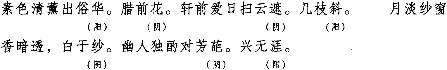 注:本词例押花部“花” 韵。其中,“遮” “斜” 在古韵中属“麻” 韵,“麻”在现代韵中属 “花” 韵。