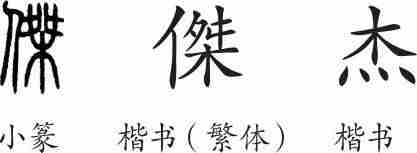 “杰”是会意兼形声字。小篆从人,桀声。隶变后楷书写作“傑”。汉字简化后写作“杰”。