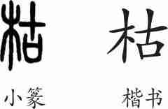 “枯”是形声兼会意字。小篆从木(表示与草木有关),古声,古兼表死去之意。隶变后楷书写作“枯”。