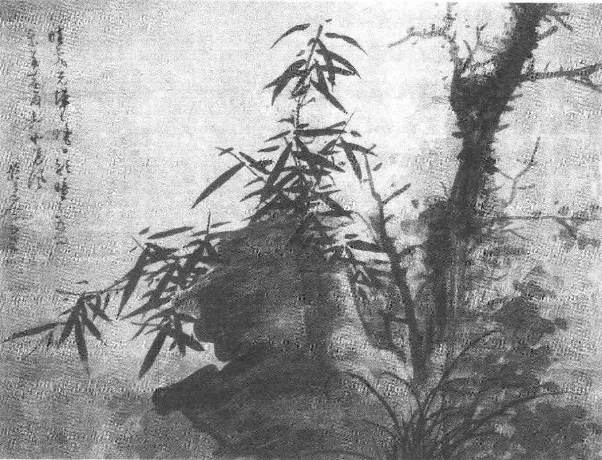 这里还需指出的是,吴镇一生最喜画渔父图和梅竹,这显示了他的人品气节,也使他对这类题材的运用相当娴熟。由此图中的槎枒枯木,我们可想起吴镇常画梅树的老干新卉;由此图中的丛竹,我们亦可想到吴镇画过不少墨竹谱,他曾苦苦探究写竹技法。记得吴镇还为画竹题过一首诗:“始由笔墨成,渐次忘笔墨。心手两相忘,融化同造物。”由此再来看这幅画,吴镇表现枯木、丛竹和巨石,在笔墨上竟能达到如此出神入化,也就不奇怪了。