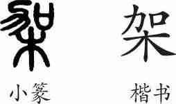 “架”是后起字,为形声兼会意字。楷书写作“架”,从木,加声,加兼表相加之意。
