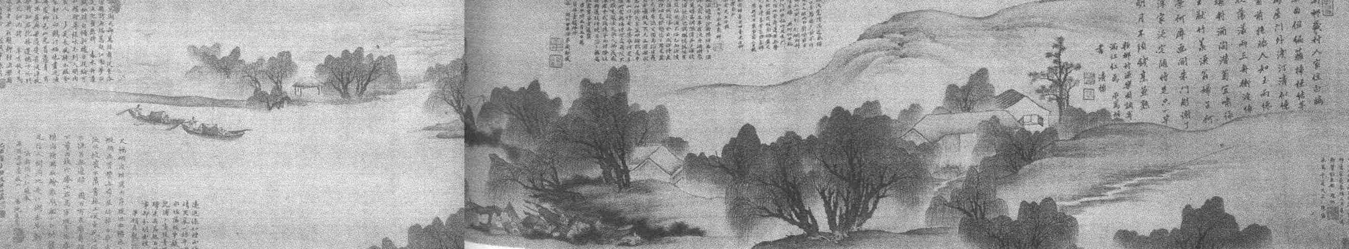 柳村为清代梁允植居处。十八家题咏上款皆为“承笃”,据徐轨《词苑丛谈》记:“柳村在恒山之南,梁冶湄使君读书其中,属金陵樊圻画《柳村渔乐图》。”梁冶湄即梁允植,字承笃,河北正定人,官至延平知府,著有《柳村词》。据卷后吴榷题诗:“拙宦栖迟苦不调,感时愁绝怀故土。故乡迢遥在何处,旧游尚记门前树。万缕拖烟手自栽,绿荫总在今谁主。”悉知梁允植宦游在外,因思念故乡,故请樊圻绘此图以寄托怀乡之情。
