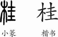 “桂”是形声字。小篆从木,圭声。隶变后楷书写作“桂”。