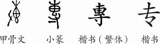 “专”是会意字。甲骨文左边像一只手,右边像纺线用的纺砖,会用手转动纺砖纺线之意。隶变后楷书写作“専”。汉字简化后写作“专”。