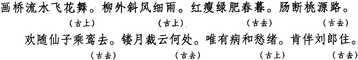 注: 本词例押古上声“语” “麌” 韵,古去声“御” “遇” 韵。因 “语” “麌”“御” “遇”在现代韵中属“居”韵,故全调可押衣部 “居” 韵。