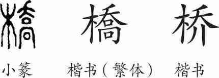 “桥”是形声兼会意字。小篆从木,喬声,喬兼表高之意。隶变后楷书写作“橋”。汉字简化后写作“桥”。