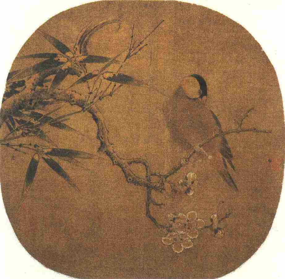 这幅扇页的构图截取梅竹的枝干局部,中国画技法上称之为“折枝”。北宋赵昌擅长此技,林椿在运用上更臻纯熟。在不满方尺的画面上,仅安置一枝虬曲如弓的梅干和几竿挺拔如戟的竹枝,而梅树的老硬蟠结和竹篁拔地丛生的气势依然显示出来。主体寒鸴则处于画幅的显著地位,突出了安宁闲和的神态,配以雪天里翠青的竹叶和盛放的梅花,表达出了一种标格清远的意韵。