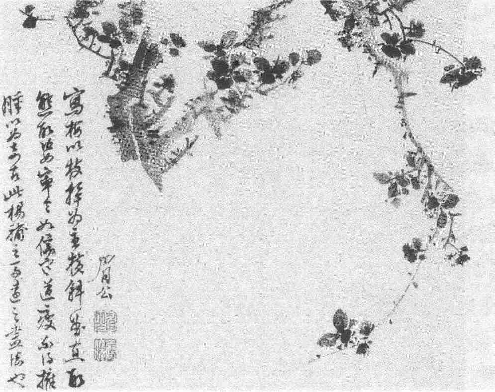 画史记陈继儒二十一补诸生,二十八弃去,退而结茅小昆山之阳,修竹白云,焚香晏坐其间,豁如也。解青衫后,绝不与户外事,但有关旱潦转输,或大不便于民与国者,乡衮嗫嚅不敢出,仲醇(即陈继儒)慷慨弗顾,委曲辨析,洞中肯竅,往往当事动色,默夺其意而潜寝之。(《无声诗史》卷四)由其立身处世的品格,落笔写梅,不言而喻是瓣香了宋元以来的文人传统的。