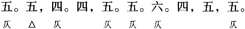 注:一、本词例押古上声“纸” “荠” 韵,古去声 “寘” “队” “泰” 韵。因“纸” “寘” “荠” 在现代韵中属“衣”韵,“秦” 在古韵中与 “沛”同韵,“队” “沛” 在现代韵中同 “醉” 韵,而“醉” 在古韵中属“寘”韵,故全调可押衣部“衣”韵。