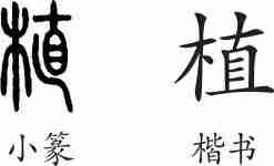 “植”是形声兼会意字。小篆从木,直声,直兼表直立之意。隶变后楷书写作“植”。