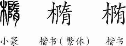 “椭”是形声字。小篆从木,隋声。隶变后楷书写作“橢”。汉字简化后写作“椭”。