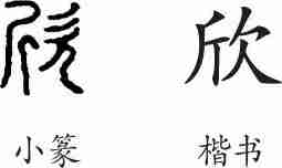 “欣”是形声字。小篆从欠,斤声。隶变后楷书写作“欣”。