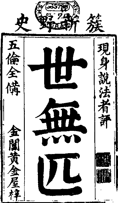 清乾嘉间金阊黄金屋刊本《世无匹奇传》扉页书影