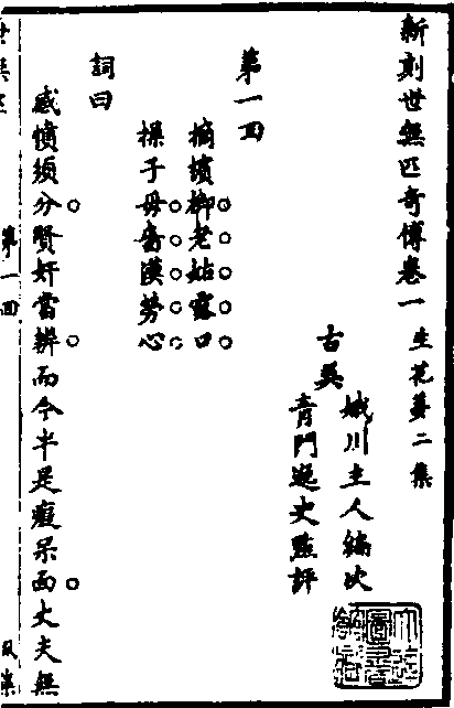 清代白话长篇世情小说。一名《世无匹》、《生花梦二集》。四卷十六回。题“古吴娥川主人编次,青门逸史点评”,作者姓氏不详。成书于清康熙年间。