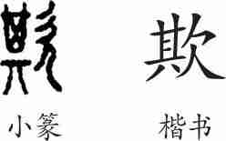 “欺”是形声字。小篆从欠(人张口,骗人也用口),其声。隶变后楷书写作“欺”。