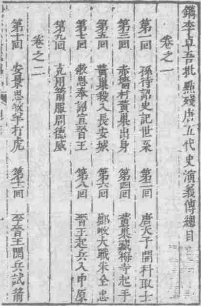 明刊本《残唐五代史演义传》目录书影