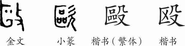 “殴”是形声字。金文从攴,區声。小篆改为从殳,也表示击打。隶变后楷书写作“毆”和“敺”,汉字简化后写作“殴”。