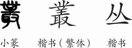 “丛”是会意字。小篆从丵(表示丛生的草),取声。隶变后楷书写作“叢”。汉字简化后写作“丛”。