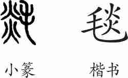“毯”是后起字,为形声字。楷书写作“毯”,从毛(表示与毛发有关),炎声。
