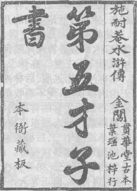 清初金阊本衙藏板叶瑶池覆刊贯华堂刊本《水浒传》扉页书影