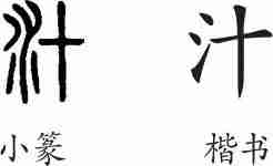 “汁”是形声字。小篆从水,十声。隶变后楷书写作“汁”。