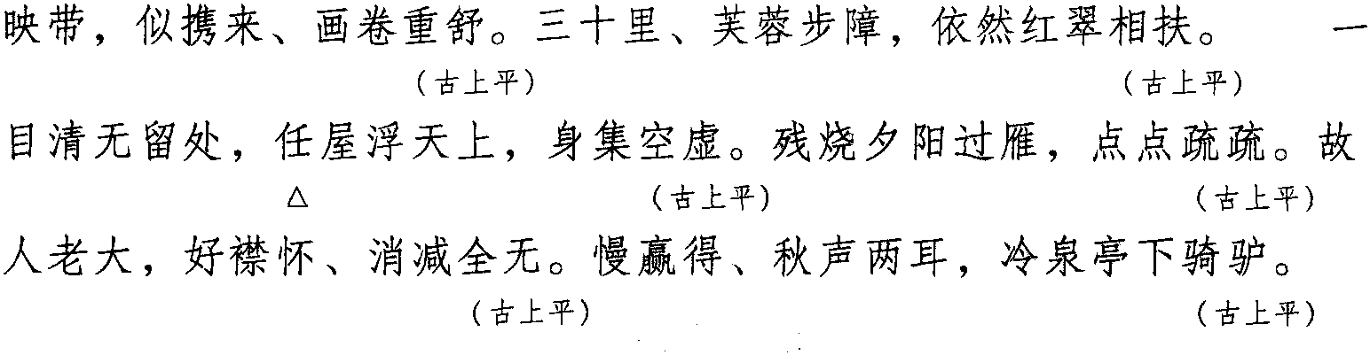 注: 本词例押古上平“鱼” “麌” 韵。因 “鱼” “麌” 在现代韵中属 “居” 韵,故全调可押衣部“居” 韵。