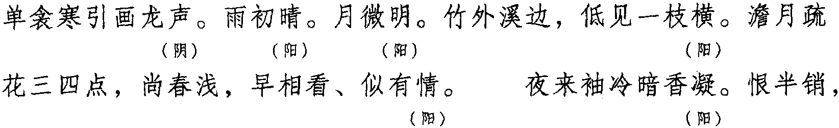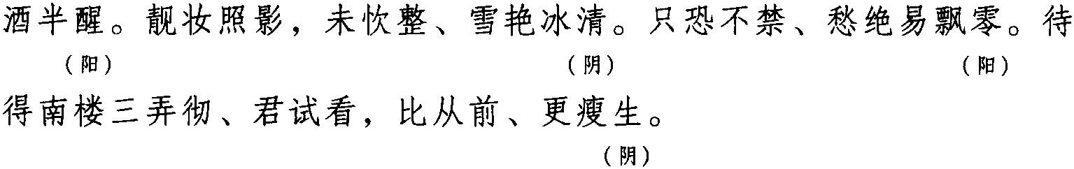 注: 本词例押东部“声”韵。其中,“醒” 在古韵中与“零” 同韵,而“零”在现代韵中属 “声” 韵,阳平。