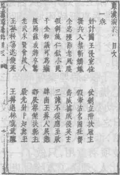 明末刊《剑啸阁批评东西汉通俗演义》本《东汉十二帝通俗演义》目录书影