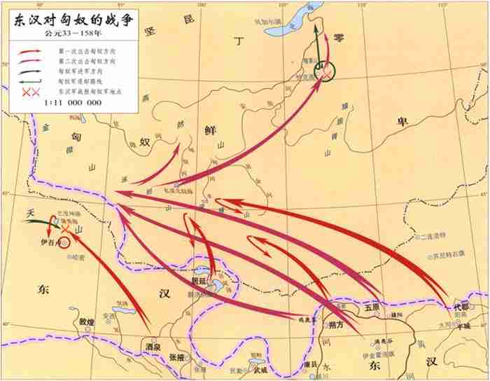 公元33年至158年,东汉王朝为保卫北部边疆的安全,与匈奴所进行的长期大规模的战略防御作战。