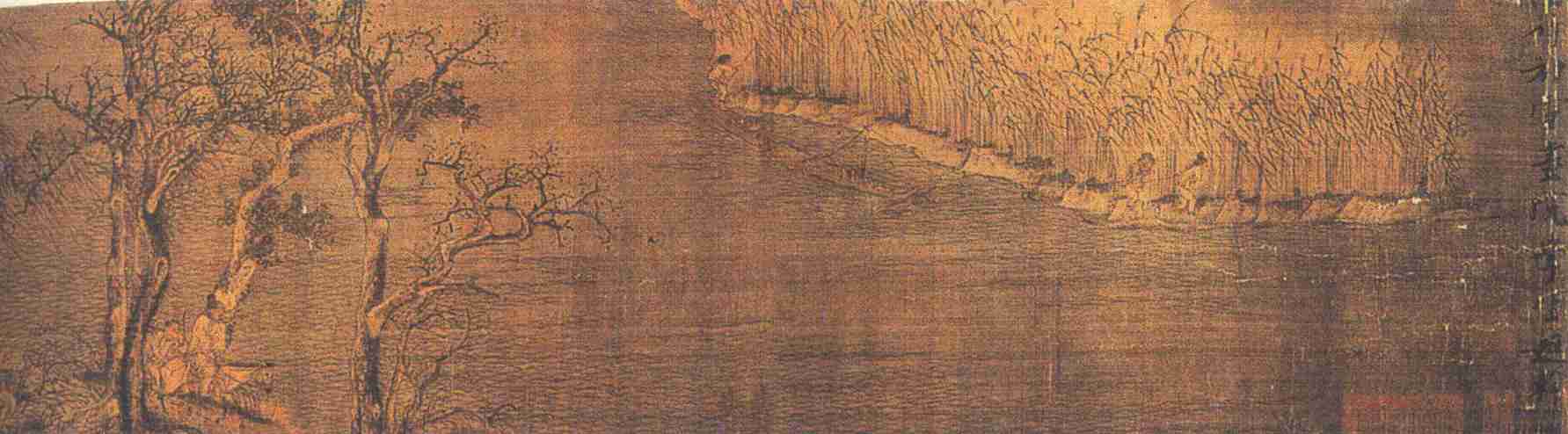 五代时期南唐中主李璟,采取西蜀孟昶的作法,在宫廷设置了翰林图画院,一时收罗了一批画家,其中不乏高手。赵幹作为后主时的画院学生,以善画山林泉石而著名。《宣和画谱》称其“所画皆江南风景。多作楼观、舟舡、水村、渔市、花竹,散为景趣,虽在朝市风埃间,一见便如江上,令人褰裳欲涉而问舟浦溆间也”。《圣朝名画评》评谓“深得浩渺之意”,“穷江行之思,观者如涉”。