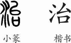 “治”是形声字。小篆从水,台声。隶变后楷书写作“治”。