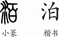 “泊”是形声字。小篆从水,百声。隶变后楷书写作“泊”。